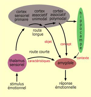 Il est important de noter que toutes ces recherches sur les structures nerveuses mises en jeu lors de processus émotionnels mettent en avant l’implication de l’hypothalamus2. Il est également important de noter que ce dernier occupe une situation privilégiée dans le contrôle des réponses hormonales, expliquant alors les manifestations physiologiques suite à l’apparition d’une émotion.