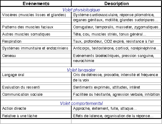Scherer K. R. (1984). Emotion as a multicomponent process : A model and some cross-cultural data. In P. Shaver (Ed)., Review of Personality and Social Psychology (Vol.5, pp. 37-63). Beverly Hills : C.A., Sage. Tiré de Scherer, K. R. & Sangsue, J. (1996).