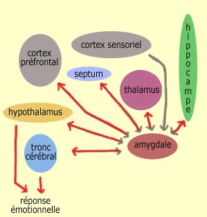 Il est important de noter que toutes ces recherches sur les structures nerveuses mises en jeu lors de processus émotionnels mettent en avant l’implication de l’hypothalamus2. Il est également important de noter que ce dernier occupe une situation privilégiée dans le contrôle des réponses hormonales, expliquant alors les manifestations physiologiques suite à l’apparition d’une émotion.